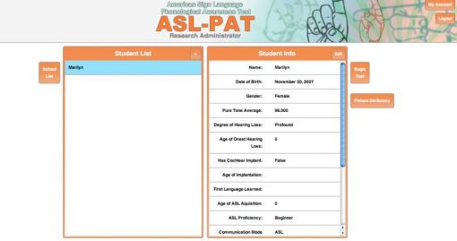 The American Sign Language-Phonological Awareness Test (ASL-PAT) is being developed at the Minerva Deaf Research Lab (MDRL) at the University of Alberta, Edmonton, Alberta, Canada. The purpose of this Web-delivered test is to assess ASL phonological awareness in young deaf children aged 4-7 years old.