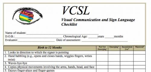 The VCSL Checklist is the only standardized measure of American Sign Language (ASL) acquisition for young children in the United States. It was created for use by educators (teachers, early interventionists, Deaf mentors) who work with signing children from birth through five years of age. It can be used with older children who are language delayed to identify strengths, weaknesses, and gaps in development. The VCSL Checklist monitors children’s sign language acquisition and helps determine if children are developmentally on track. It provides an indication of whether a child’s language is typical, advanced, or delayed compared to norms, which were created during the standardization process. The VCSL Checklist was based on informal ASL checklists that had been created by Schools for the Deaf, Deaf Canadian organizations, and university researchers. However, none of these informal measures included norms. The VCSL Checklist focused on incorporating existing knowledge and moving it to the next level by collecting data, piloting, and then creating norms based on typically developing native-signing Deaf and hard of hearing children from birth through the age of 5.