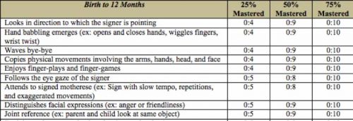 The VCSL is a standardized measure of early sign language acquisition and this should be helpful in helping children establish a strong language base upon which to learn. We would like to conduct a second round of data collection with the goal to expand the data set, which would increase the reliability of the assessment. Some items in the upper age range fall into quartiles that are 8 months in range. We would like to reduce this. We would also like to uncover any items that may be missing in the current checklist.